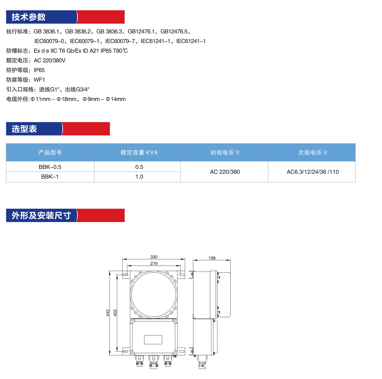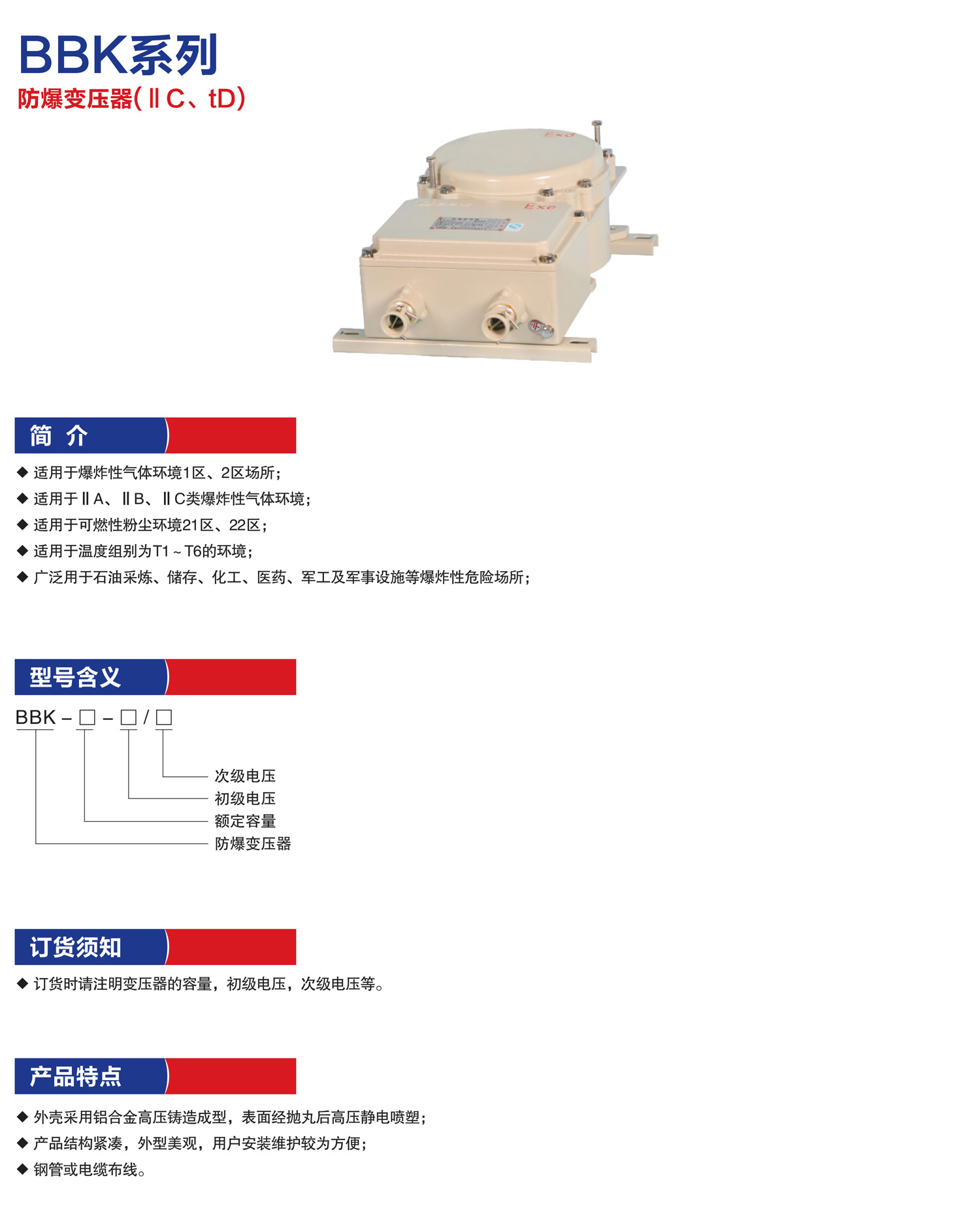 产品名称:BBK系列防爆变压器