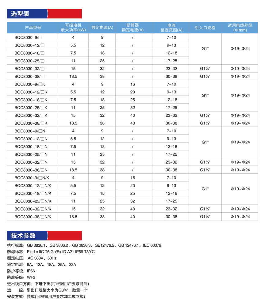 产品名称:BQC8030防爆防腐电磁起动器