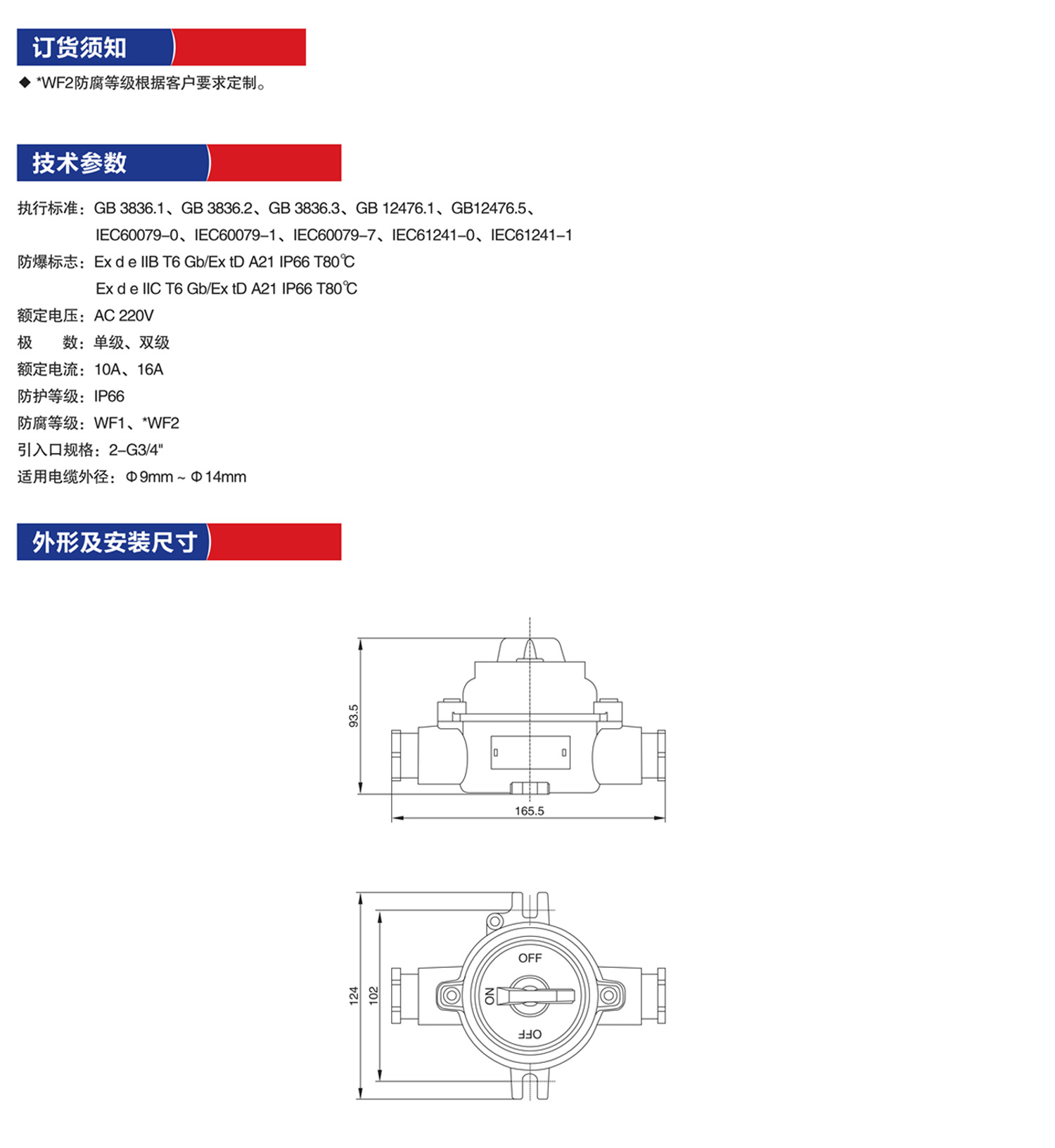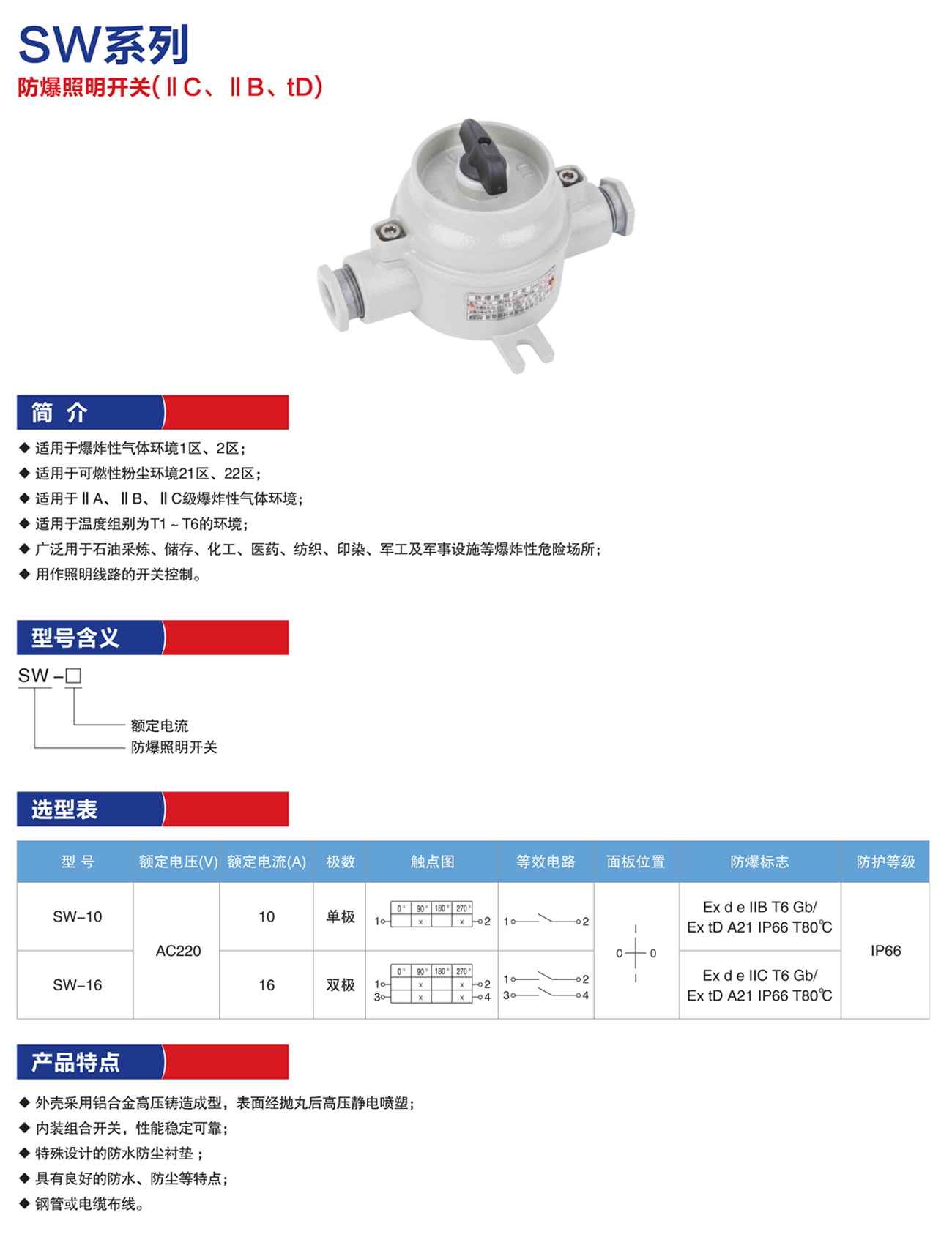 产品名称:SW-10系列防爆照明开关