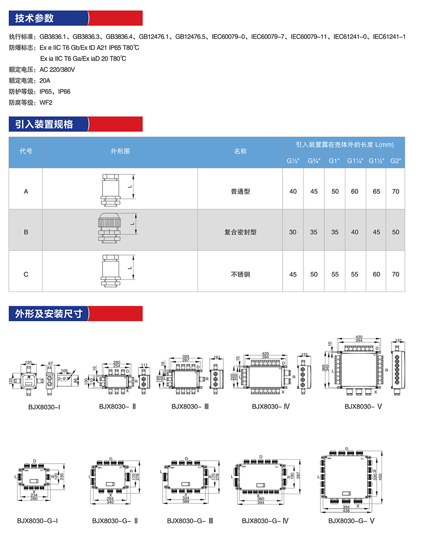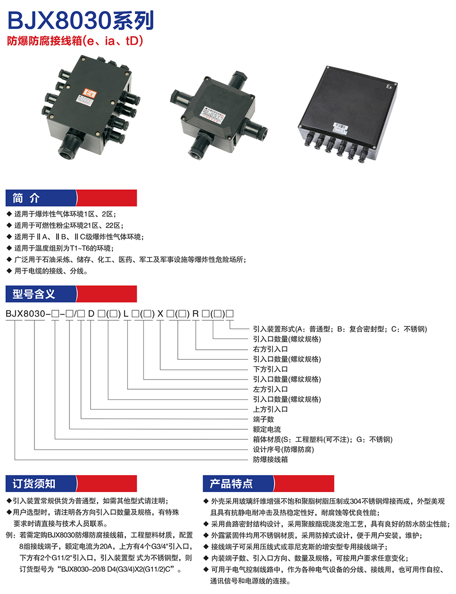 产品名称:BJX8030系列防爆防腐接线箱