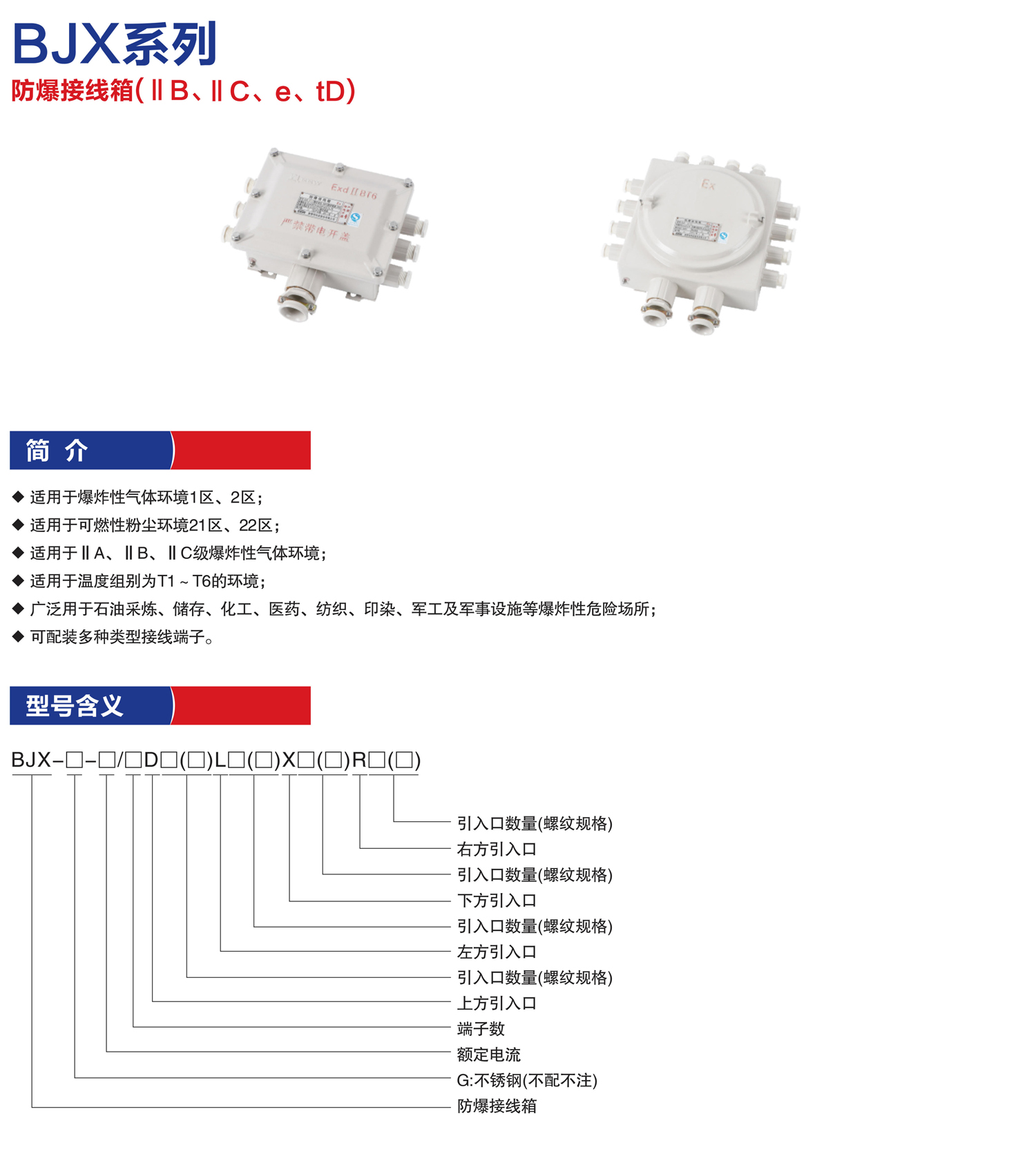产品名称:BJX系列防爆接线箱