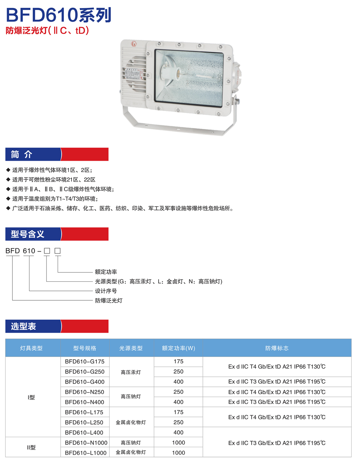 产品名称:BFD610防爆泛光灯
