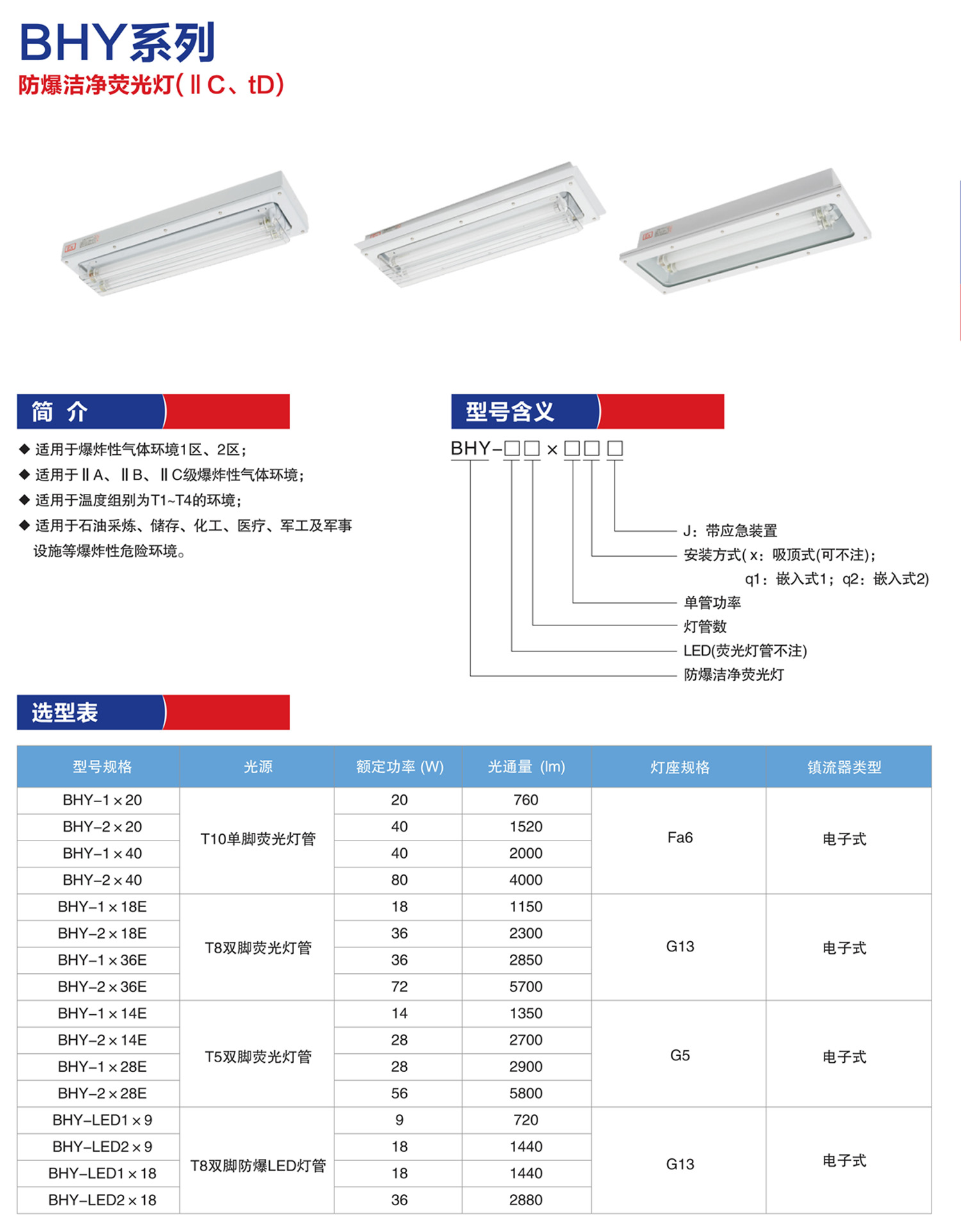 产品名称:BHY系列防爆洁净荧光灯