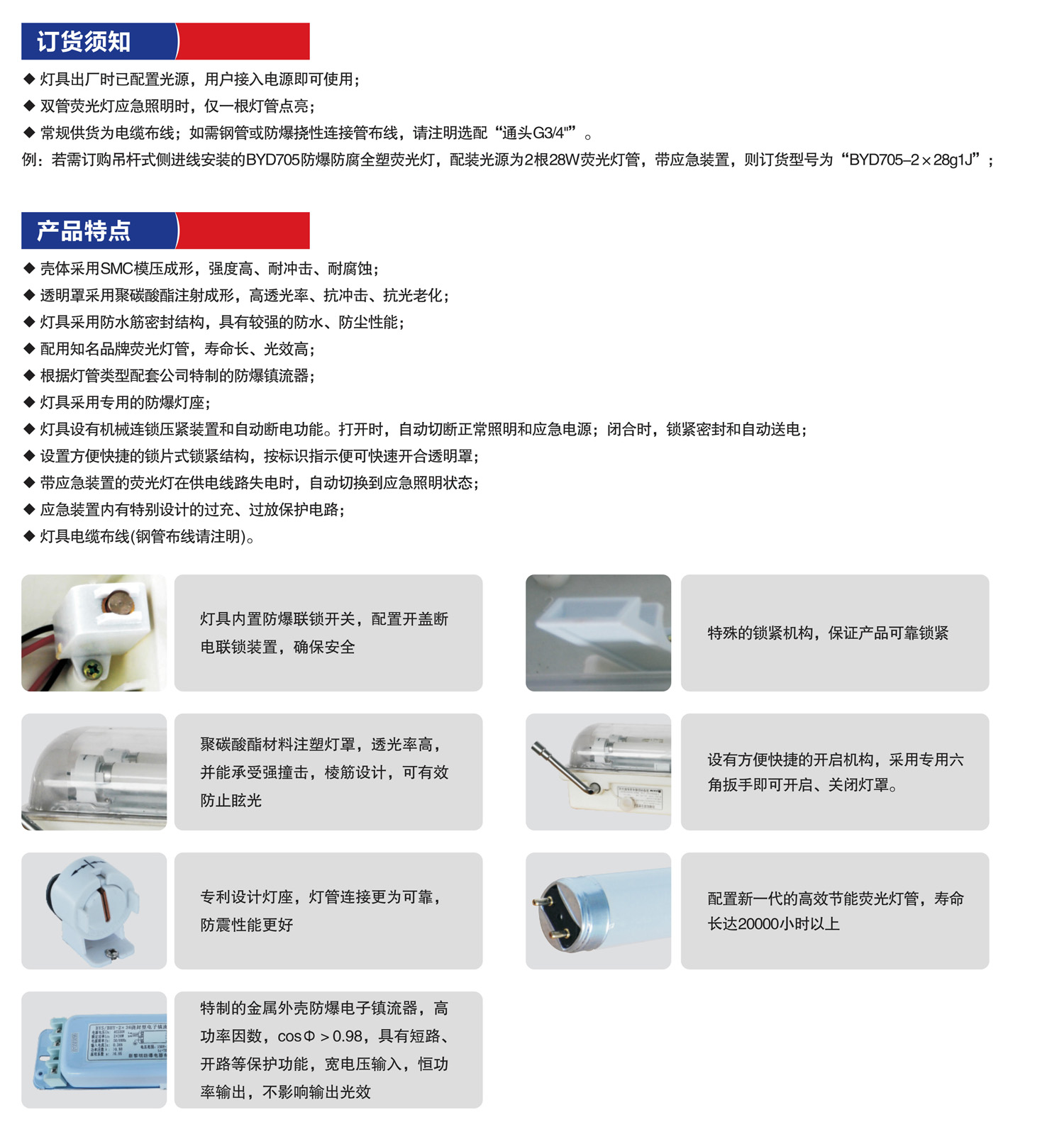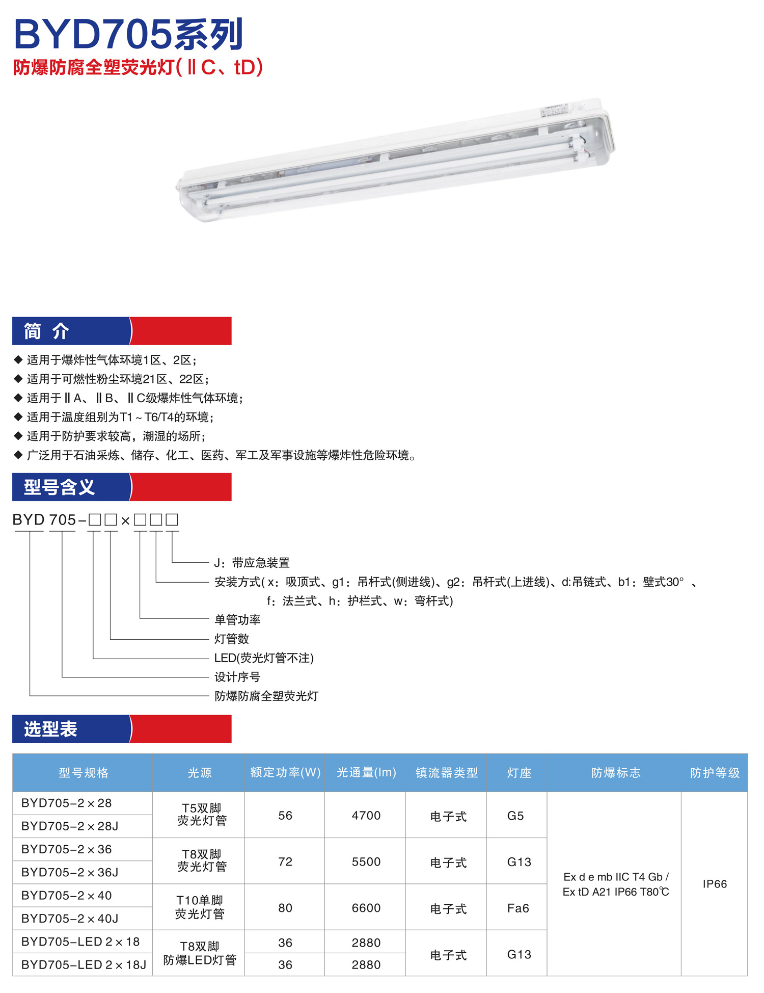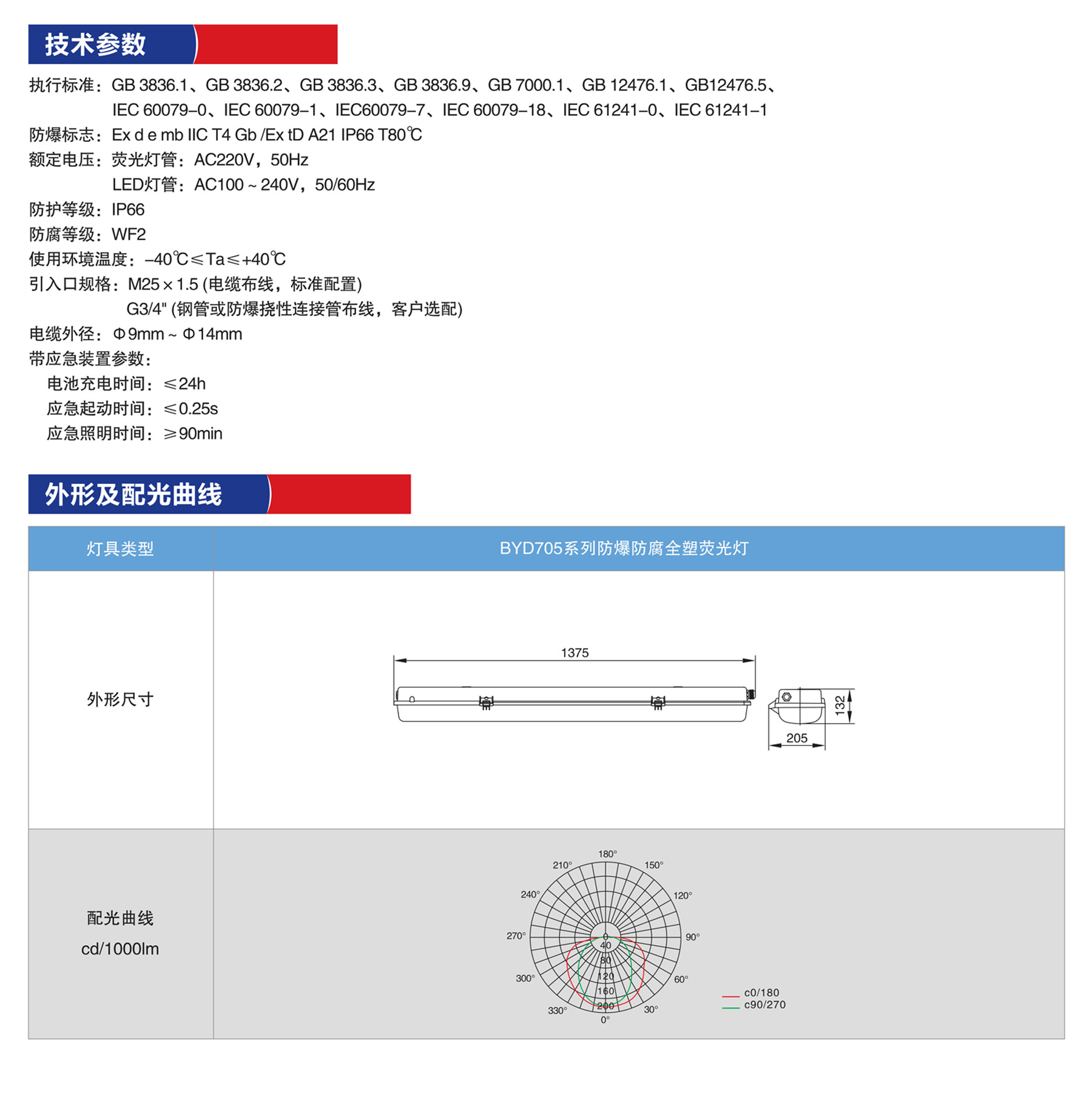 产品名称:BYD705系列防爆防腐全塑荧光灯