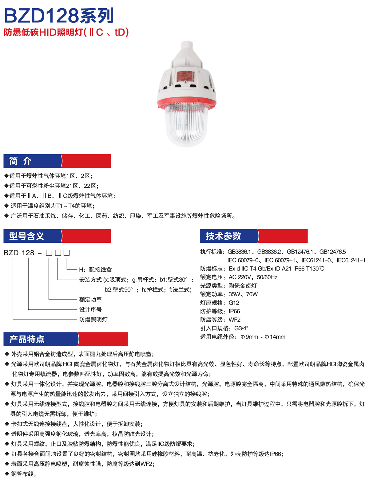 产品名称:BZD128防爆低碳HID照明灯