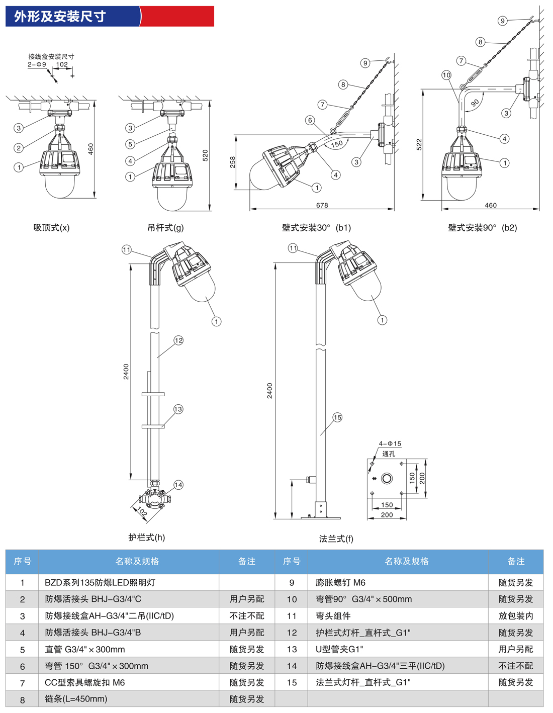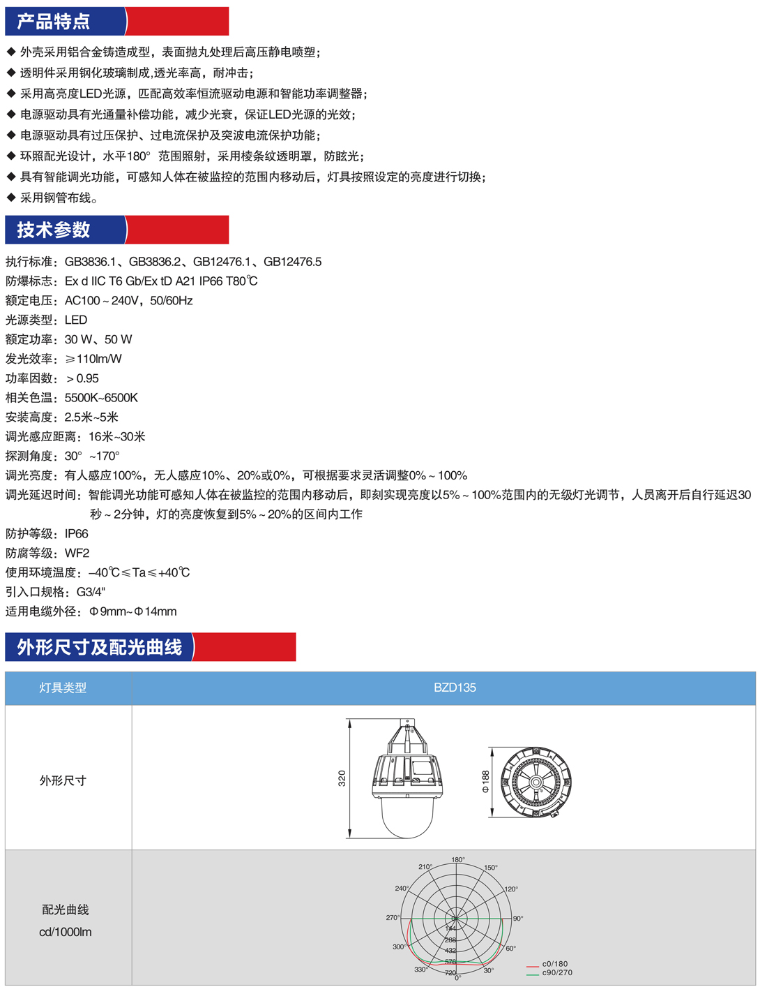 产品名称:BZD135防爆LED照明灯