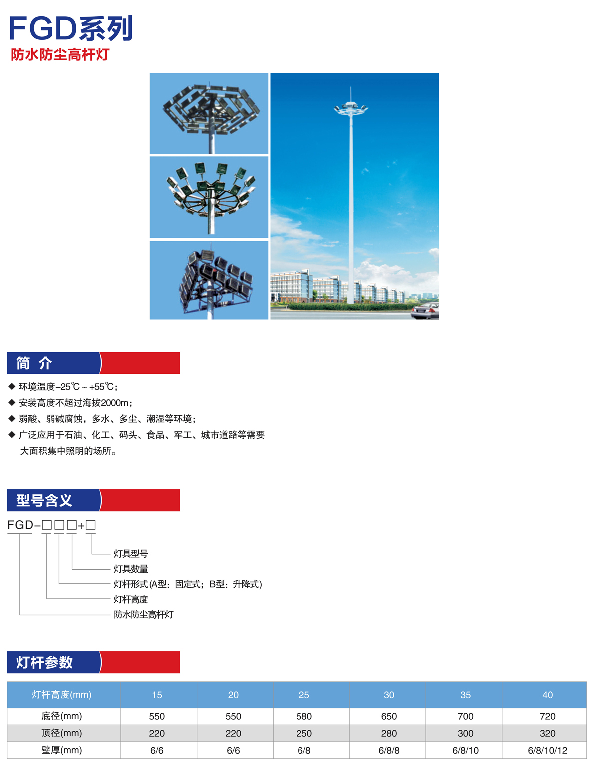 产品名称:FGD系列防水防尘高杆灯