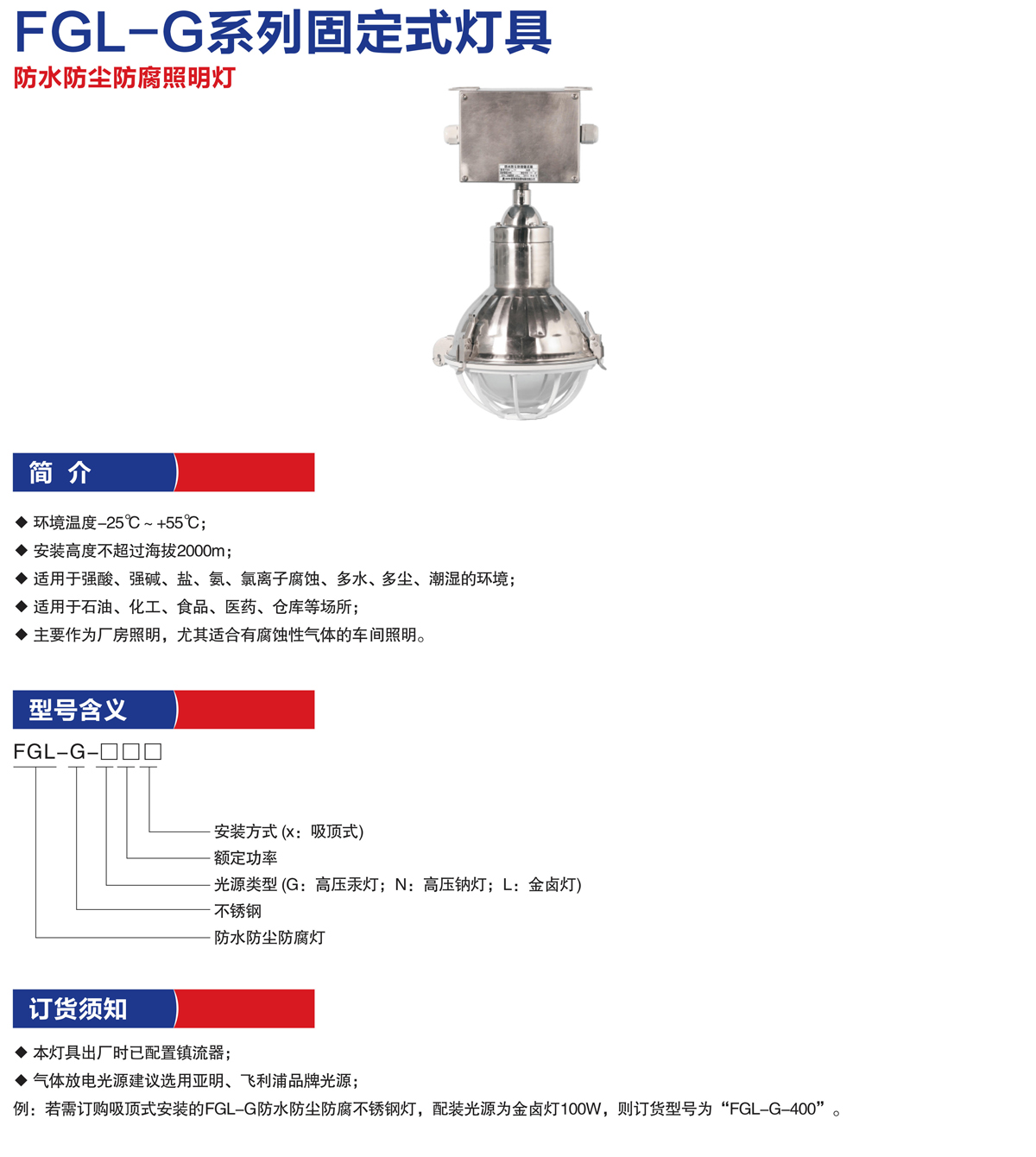 产品名称:FGL-G系列防水防尘防腐不锈钢灯
